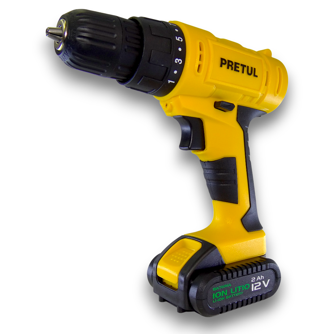 – Taladro inalámbrico de 12V con diseño ergonómico y liviano.